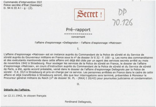 Ferdinand Dellagnolo alais « Agneau » était le fils naturel de Lucie Dellagnolo, célibataire, correspondancière. Le général Raynal le présenta à Marie-Madeleine Fourcade. Volontaire pour une mission d’information, L’agneau fut envoyé à Strasbourg annexée en novembre 1942 car il savait l’allemand. Il tomba très rapidement dans les mains de la Gestapo. On ignore totalement les raisons et les conditions de son arrestation. Selon Isselhorst, chef régional du RSHA, son arrestation « n’empêcha pas seulement la mise en place de l’organisation en Alsace, mais permit surtout à l’Abwehr de s’introduire dans « Alliance ».