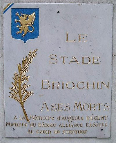 Plaque d’Auguste Régent, stade Fred Aubert, 31 rue Joseph Le Brix.