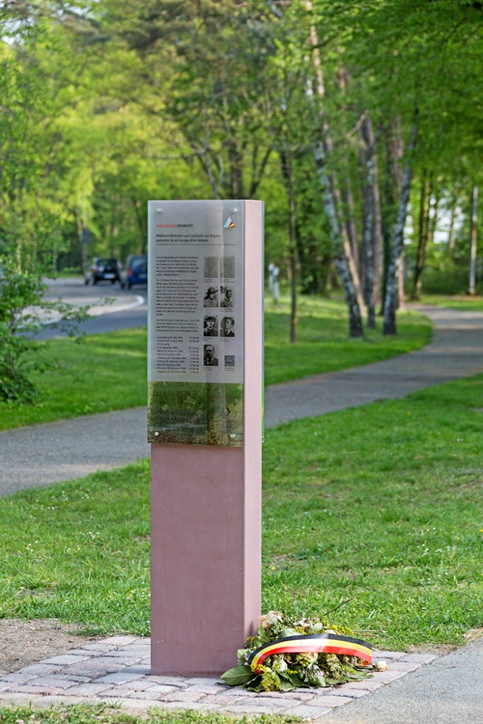 Karlsruhe (Bade-Wurtemberg) Stèle de l’Allée Theodor Heuss en mémoire des 14 résistants du réseau Alliance fusillés à côté de la forêt du Hardtwald le 1er avril 1944. 1er avril 1944 – Résistants français et belges, mort pour une Europe sans barbarie. Brochure à téléchargeren cliquant sur l’image Partager : Partager sur X(ouvre dans une nouvelle fenêtre) X Partager sur Facebook(ouvre dans une nouvelle fenêtre) Facebook J’aime chargement… Articles similaires