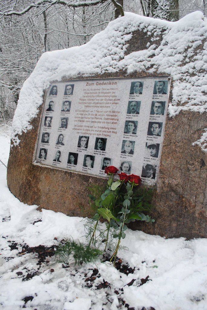Huit femmes et 17 hommes ont été assassinés par la Gestapo le 30 novembre 1944 à Hagenschiess et enterrés dans un cratère de bombe.