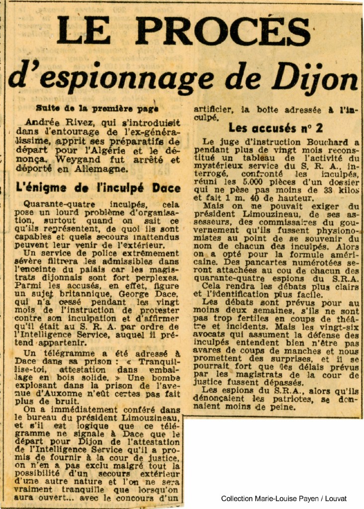 Un procès où comparaîtront des espions et des assassins s’ouvrait en juillet 1946 à Dijon.