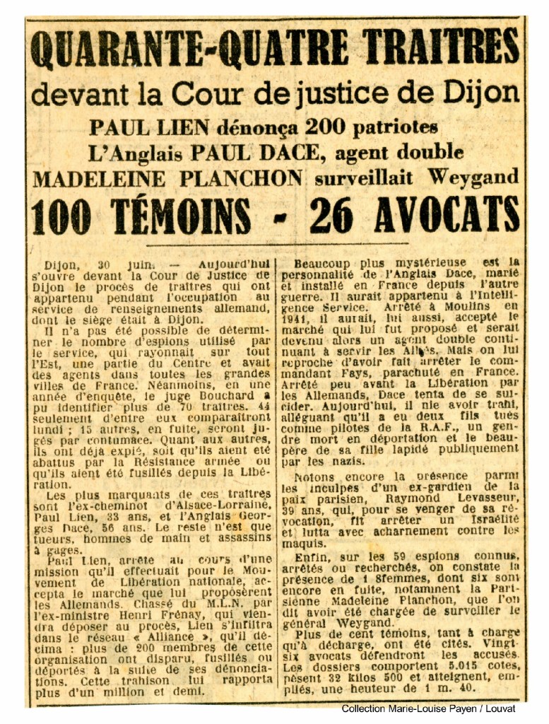 Nombreuses coupures de presse sur le réseau Alliance dès fin 1944.